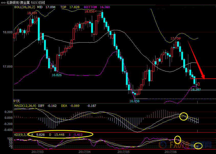 不过KDJ亦处于超卖区,这或限制银价短线的下行空间,亦需提防多头反扑;上方则关注隔夜高点16.650附近阻力,除非收盘站在该位置上方,否则银价都面临进一步下行风险。
