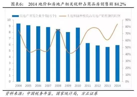 今年国庆节前后,各地开始密集进行楼市调控,试图给过热的楼市降温,而在新政密集轰炸之后,短期内楼市确实有所降温。 由于前车之鉴,面对越调越涨的房价,不少业内人士对限贷限购政策能否真正抑制房价并不抱有信心。不少业内人士指出,真正能长久有效稳定房价的利器是房产税。 一旦房产税开征,将对过热的中国" 房地产市场,特别是投资性需求形成极大抑制。持有第二套房子的成本将大大增加,这会导致准备购买第二套房子的投机者踯躅不前和已经拥有第二套房子的投机者仓皇抛售。 不过对于房产税对房价的抑制作用,也有业内人士存疑。方正宏观任泽平表示,房产税能否抑制房价,主要在于房产税是否会改变市场预期和供需关系。在房价严重脱离居民消费能力,投资换手率高、投机获利盘巨大的市场环境下,房产税会增加持有成本,促使投资者抛售房产,同时弱化改善性和投资性需求,从而导致房价下跌。而在人口持续流入、经济和产业发展前景好的城市,市场需求旺盛,供不应求,房产税会被转嫁给需求方,推高房价和房租,并不能抑制房价上涨。 财经评论员马光远表示,从理论及欧美等国的实践看,建立在土地权属永久基础上的房产税作为持有环节的税收,通过增加房东的持有成本而能够促进房价的合理回归。但是,这种房价的回归并不是各国征收房产税的直接目的。很多国家的房产税征收目的,大多就是为地方征收提供最主要的财政收入,特别是各国的地方政府,在征收房产税时,制度设计上尽可能的不引发房价的剧烈波动。以为出台房产税就能够抑制房价,等于羊相信狼在今天吃了羊之后不再吃羊。 华泰宏观分析了上海和重庆房产税征收的政策效果发现,房产税对房价并没有起到抑制的作用。上海在实施房地产税政策之后,商品房成交面积有所下降,但基本上在两年之后又恢复到了同样的水平。同样,我们以成都作为重庆的对照组做DID,结果也无法支撑房产税能够有效抑制房价,而重庆地区的房地产成交量也在政策实施一年之后恢复到原来水平。房产税从短期来看可能降低" 房地产市场需求,但是长期来看对于房价的影响并不是很大。 而世界范围内,华泰宏观统计发现,房产税对房价只有轻微的负向影响关系,相关系数为-0.087,房产税对房价指数的边际影响很小。根据OECD的数据,世界主要国家房产税率平均值为2.61%。 税收在房价里占比有多少? 此前,任志强接受媒体采访时声称,“我找不到任何一个国家需要把房价降下来的理由。” 任志强表示,为什么住宅的价格要比商业的价格高?因为对政府来说,住宅只能是一次性的投入,后期没有税收。而假定我们按照国际办法,以居住地纳税为主,情况就会大有改变,因为以居住地纳税为主,住宅能产生税收,对当地政府来说是好事,它就会抑制房价,不让它涨太高。但现在不是这样的,之所以地方政府宁愿折价,也希望盖更多的写字楼,因为背后有更多税收。 那么,房价不断上涨,又有多少贡献给了税收? 根据方正宏观任泽平近日发布的研报,目前涉及房地产业的税种有11个,其中5个税种为房地产行业所特有,包括房产税和城市房地产税、城镇土地使用税、土地增值税、耕地占用税以及契税。 5个房地产特有税种税收合计从2004年的1207亿元,飙升至2014年的1.38万亿,十年之间暴涨11倍。占地方财政本级收入之比也从2004年的10.16%上升至2014年的18.21%。
