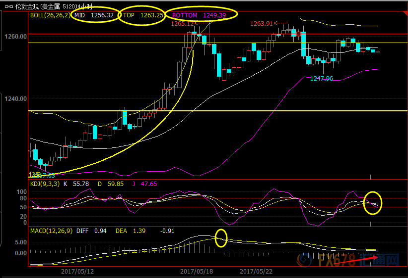 从4小时来看,KDJ结成死叉,该指标在震荡行情有效性较强,暗示金价会下探布林线下轨1249.39美元附近的支撑,MACD显示下行动能较弱,进一步下行空间仍可能受到限制。由于布林线双轨皆趋于平行,短线向上突破的概率亦不是很大。