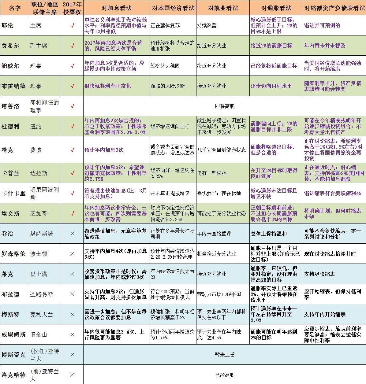 为了能让各位读者清晰明了的明白美联储15位高管都讲了些什么,汇通小编特意按照他们近期的讲话内容,整理了如下的表格。