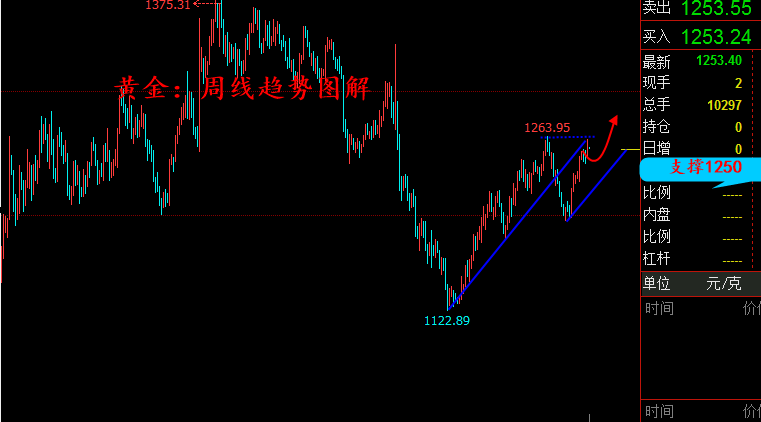 金银快讯:黄金价格周一成功触及1260后,走回落,今日支撑在1252一线,随全球金融市场掀起的惊涛骇浪,' 美元昨日已经失守99关口,美股大幅下跌,美债收益率持续下滑,但是在美盘时段美指来了一个逆转,价格从新回归99上方,现价99.24。如果' 美国总统川普不能在短时间内证明执政能力,那么市场情绪将继续恶化,金银会出现再次强攻。周一无重要数据,今日布局继续看下方解盘。 附黄金周线趋势图解: