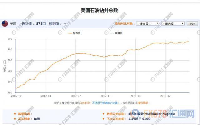 据汇通网观察,美国至10月26日石油活跃钻井数增加2座至875座,为连续第四周录得增长,且触再创2015年3月以来新高,这暗示美国未来的产量可能会继续增加。