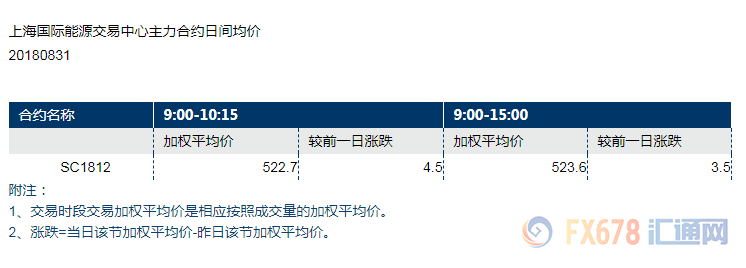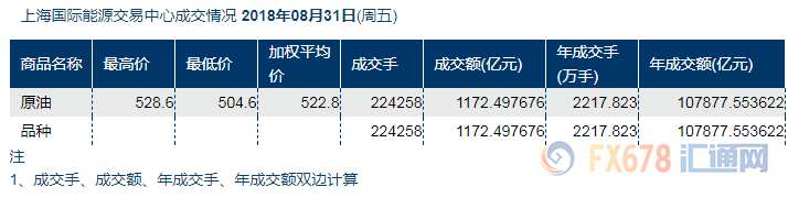 周五(8月31日)上海原油价格上涨。主力合约SC1812,以524.0元/桶收盘,上涨8.3元,涨幅为1.61%。全部合约成交224258手,持仓量增加818手至36896手。主力合约成交224134手,持仓量增加824手至33620手。