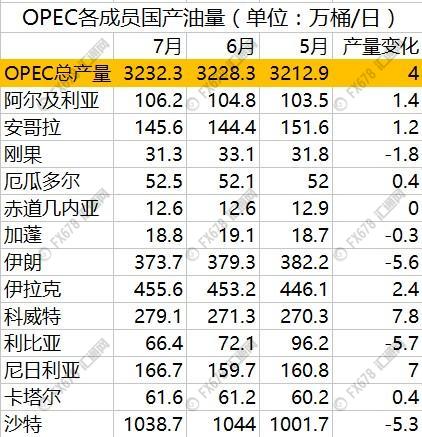 nload=imgresize(this); >二手消息显示,OPEC7月原油产出增加4.1万桶/日,至3237万桶/日;沙特上报数据显示,沙特7月产量为1028.8万桶/日,6月为1048.9万桶/日。