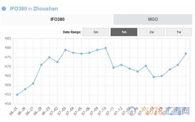 1.舟山保税燃油市场:7月24日舟山IFO 380cst参考价格为477 美元/吨,较前日上涨6美元/吨;MGO 参考价格为787美元/吨,较前日上涨1.5美元/吨。