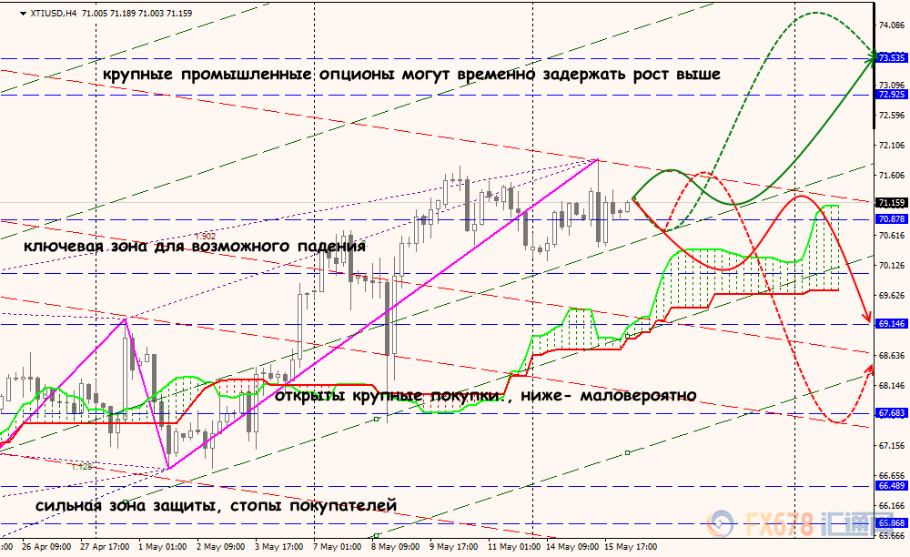 4小时K线图上看,美国原油只要能够固守在70.20美元上方,后市大幅下挫可能性不大;否则,下方中期目标看到67.70美元附近。