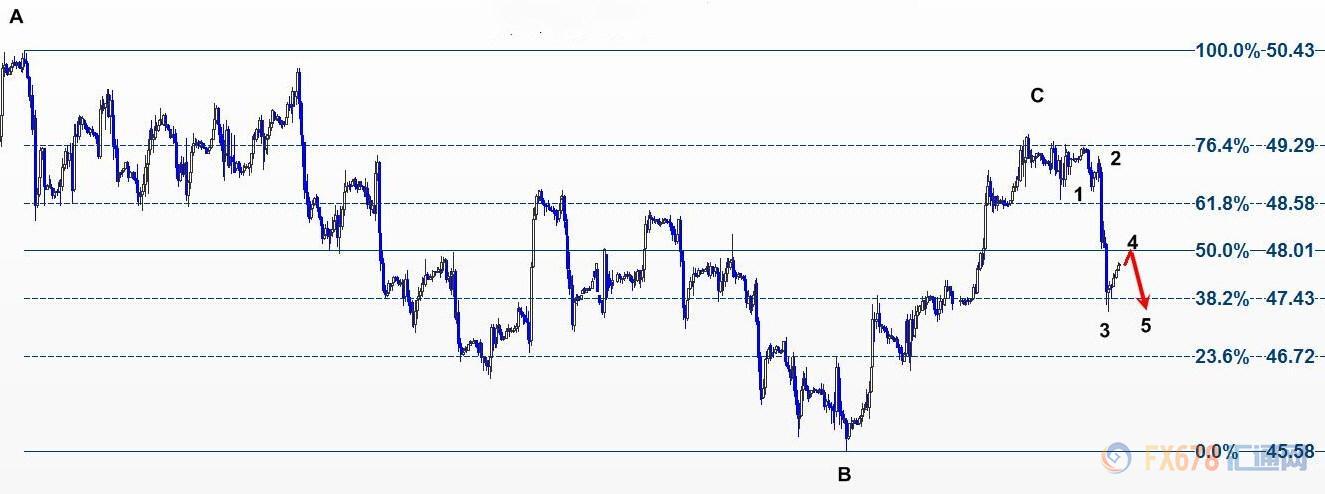 波浪趋势和费波纳奇回档分析显示,美国原油期货本轮反弹可能在阻力位每桶48.01美元结束,之后测试支撑位47.43。