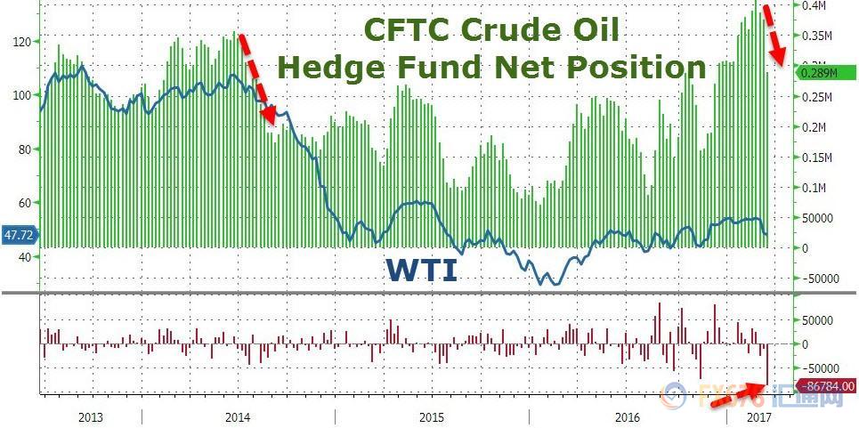 美国商品期货交易委员会(CFTC)最新公布的数据显示,WTI原油基金净多头寸减少60556手至134742手。CFTC称,多头头寸减少5.7%至301476手,为近八个月以来的最低水平,而空头头寸增加34%至166734手,录得自去年8月份以来的最高水平。