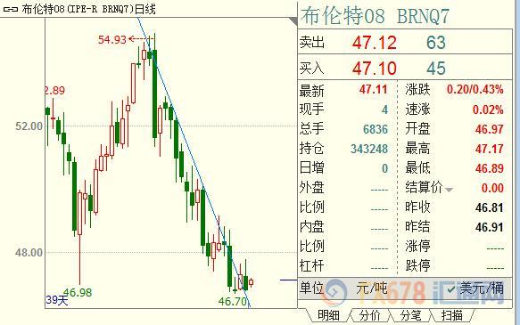 截至发稿,' 美国原油交投于44.61' 美元/桶,上涨0.41%;布伦特原油换手于47.14美元/桶,上浮0.49%。上个交易日,美国原油创下近7个月低点至44.26美元/桶。