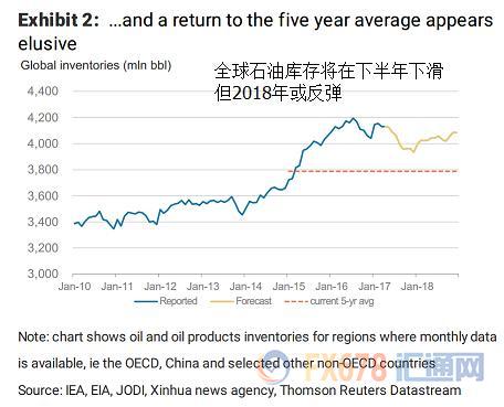 该行进一步指出,OPEC在2018年可能需要继续维持目前的石油产量配额以阻止库存继续增长,甚至需要加大减产力度,使得库存回落至五年均值附近。