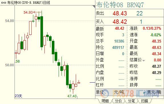 截至发稿,美国原油交投于46.31' 美元/桶,上涨0.50%;布伦特原油换手于48.53美元/桶,上涨0.50%。
