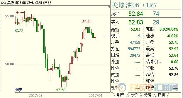 截止发稿,美国原油交投于52.83' 美元/桶,微跌0.06%;布伦特原油换手于54.92美元/桶,微升0.04%。