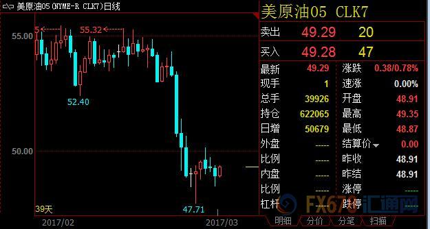 截止发稿,' 美国' 原油交投于49.29' 美元/桶,上涨0.78%;布伦特原油换收于52.08美元/桶,上涨0.89%。