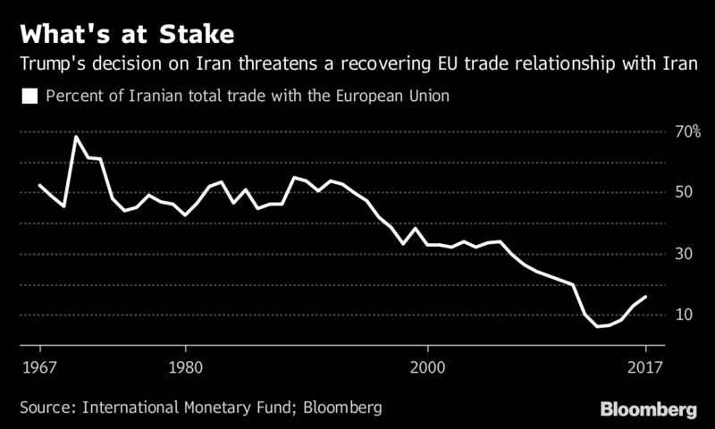 如下图所示,特朗普的决定对恢复中的伊朗和欧盟关系造成威胁