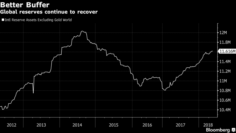 如下图所示,包括黄金在内的全球储备资产持续复苏