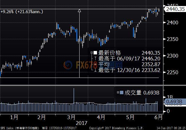 标准普尔500指数收高10.96点或0.45%,至2440.35点;