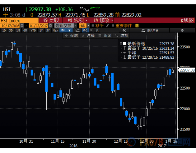 汇通网讯——1月13日恒生指数上涨0.47%,收盘价创两个半月新高,得益于能源股和权重股万科的上涨;周线则上涨1.9%,为连续第三周上扬。