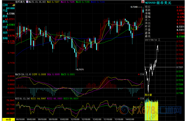 纽元兑美元再度刷新近四个月高位至0.7240。