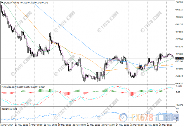 美元指数在97.40附近维持窄幅整理的走势。美国政治风波延烧,令投资人保持谨慎。美国总统' 特朗普在为期九日的中东和欧洲访问之行结束后回到' 白宫,周日(5月28日)攻击媒体并痛骂“假新闻”。此前有报导称,其女婿在特朗普执政前试图与' 俄罗斯建立秘密交流管道。