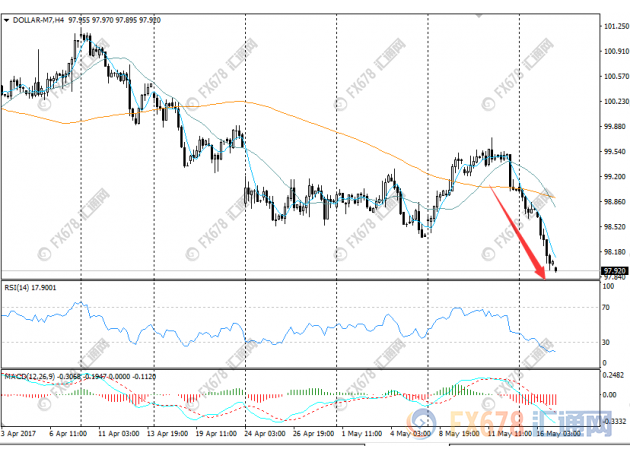 特朗普“泄密门”的影响叠加美国经济数据的疲弱,美元指出持续下挫,一度触及2016年11月9日以来的最低水平,