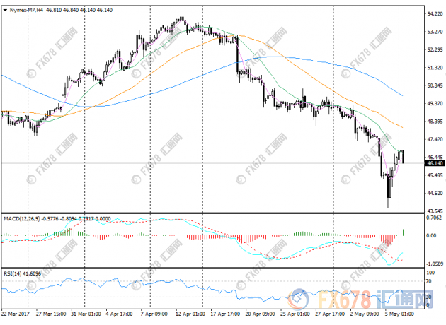 原油期货延续自上周五(5月5日)所及五个月低点反弹的势头,因投资者押注主要产油国可能延长6月到期的减产协议。美国原油6月期货现交投于46.35美元/桶,涨幅约0.30%,布伦特原油7月期货现交投于49.34美元/桶,涨幅约为0.50%。