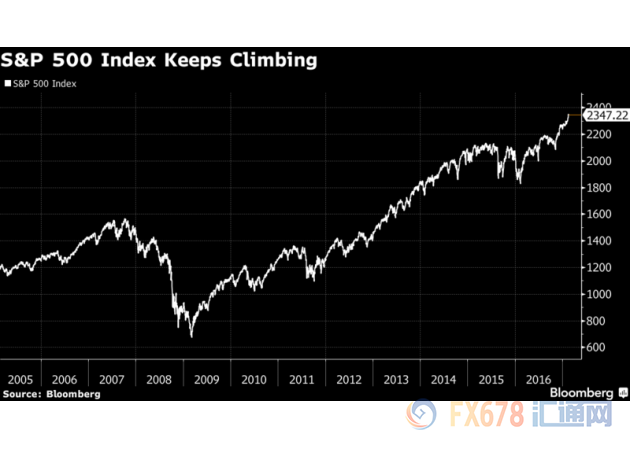 即便在只做多基金展现出怀疑的情况下,标普500指数仍继续创纪录高位,相比11月8日' 大选当天,标普500指数涨幅已接近10%。近期标普500指数领涨的个股分布于技术公司、银行和制药行业中。相比08年金融危机前创下的高位,当前标普500指数也要高出50%左右。