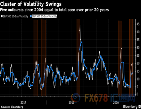 同时,投资者们的焦虑是可以被宽恕的。虽然6月23日英国投票脱欧后的市场破裂被证明是暂时的,但其被德意志银行归类为股市波动性的历史转变之一,这种情况在两年中发生了5次。在此之前,类似的事件20年中仅有5次。