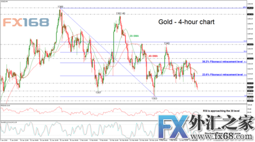 进一步下跌可能会导致3月1日低点1303美元成为主要支撑位。如低于上述水平,则可能会在短期内增强看跌趋势,从而为跌向下一个关键水平1400大关铺平道路。