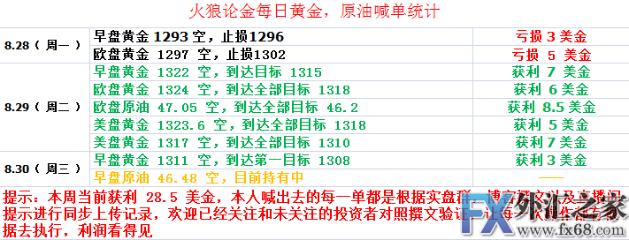 昨日火狼未能赶上做多,但却一次次进空,日内成功布局四次空单,都有效到达目标成功止盈。在火狼高喊大举做空的时候,我相信很多人都还在高位追单,而且都是多单,现在是不是已经套了很多,有没有后悔没有跟上我的节奏空下来。做空的理由在昨晚的撰文中清清楚楚的说的很明白,而且每一次做单点位都在撰文中给到,你认为撰文文字太多,都不想去认真去看,结果是什么?我一次次的进空拿到票子,而你却一次次高位追多,结果显而易见。